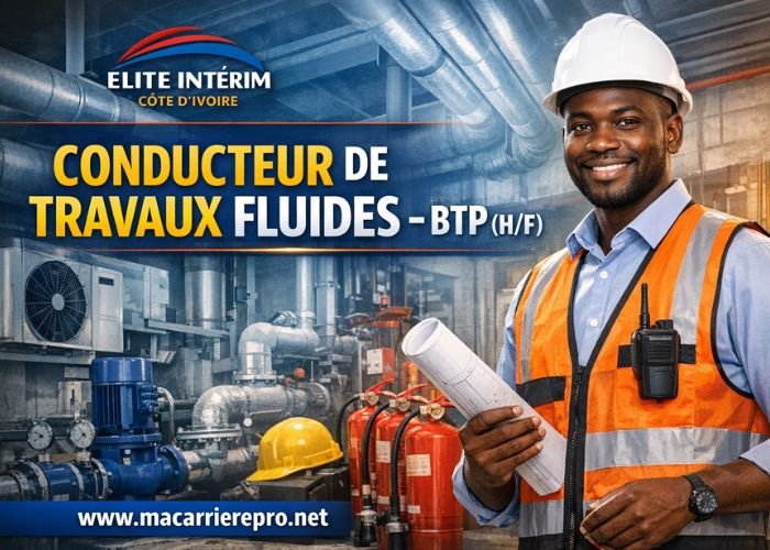 Vous recherchez un emploi dans le secteur du BTP en Côte d’Ivoire ? Une excellente opportunité s’offre à vous ! Elite Intérim Côte d’Ivoire recrute un Conducteur de Travaux Fluides – BTP (H/F) pour renforcer ses équipes techniques.
